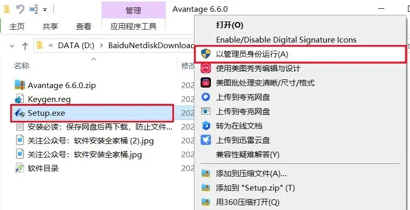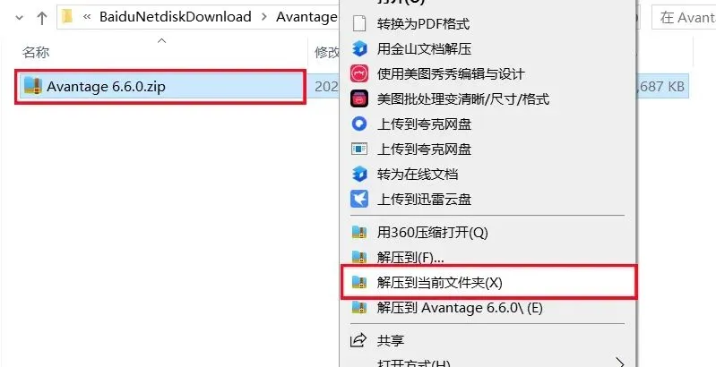 1、下载Avantage 6.6.0软件安装包到电脑上,右键选择【解压到当前文件夹】。