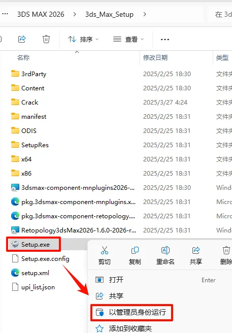 2.打开刚刚解压的文件夹,双击打开“Setup”文件夹,鼠标右键点击“Setup.exe”选择“以管理员身份运行”
