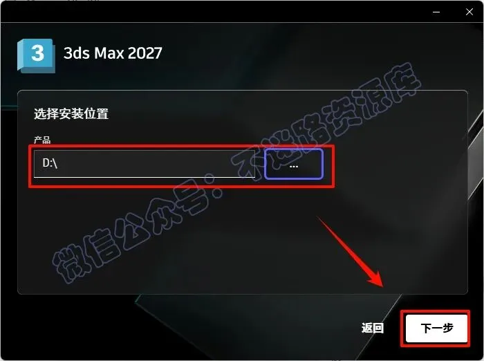 4.选择软件安装路径,建议和教程中的保持一致,本例安装到D盘(将路径地址中的首字符C改为D表示安装到D盘,安装路径不要出现中文),点击“下一步”