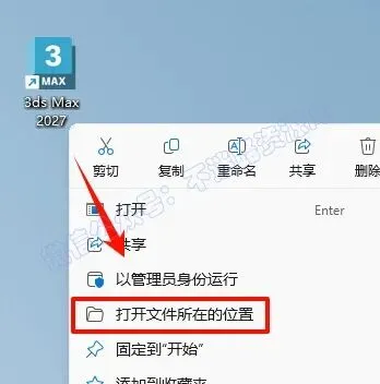 9.在桌面上找到“3ds Max 2027”软件图标,鼠标右键选择“打开文件所在的位置”