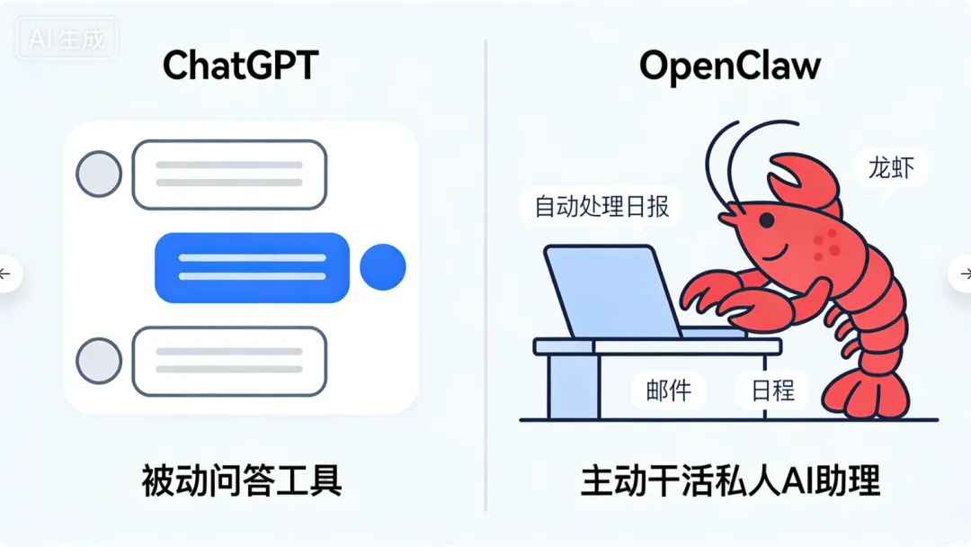 核心区别: ChatGPT 是"工具",OpenClaw 是"员工"。
