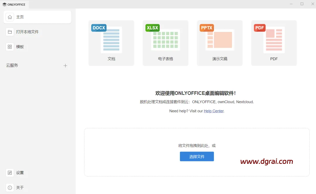 1、安装后启动软件,有初始引导画面,上侧很明显的新建文档、电子表格、演示文档、表单模板的,下面则是最近使用的文件、打开本地文件、连接到云三个选项,简单实用,导向性很强,我喜欢。一个软件就集成了多个功能,对于使用者来说很是方便。