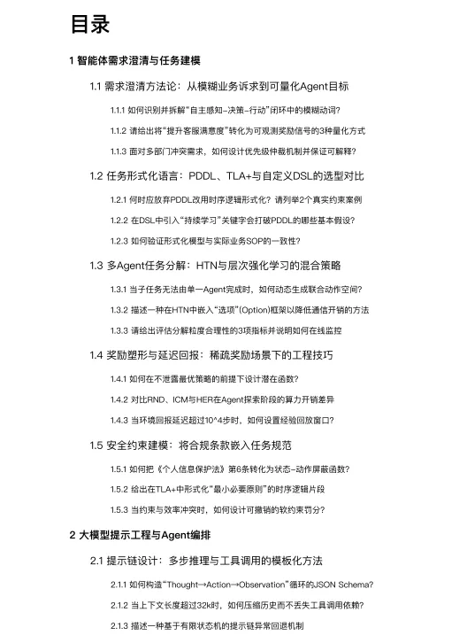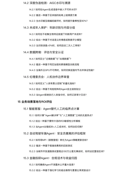 这份文档是一部关于“Agent工程师”的百科全书式实战指南,它系统性地解答了如何从零到一构建、优化并运营一个符合商业要求和安全合规的智能体系统所面临的绝大多数核心问题,对从业者具有极高的参考价值。