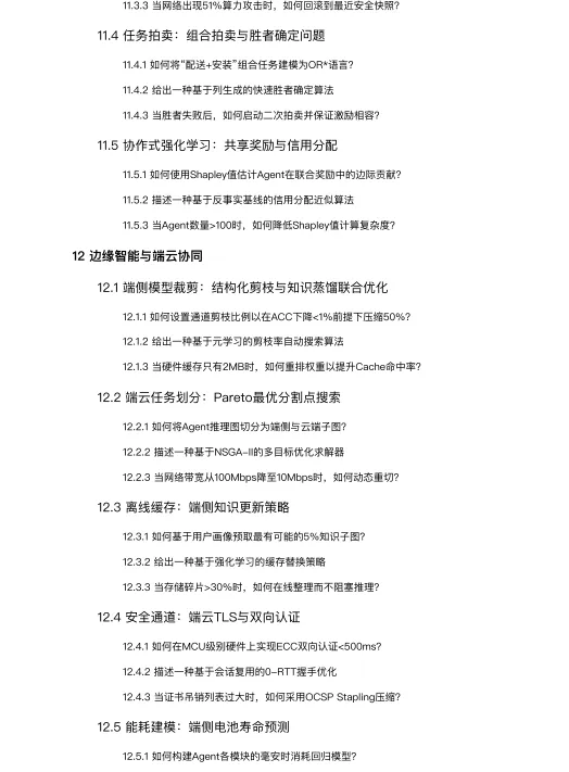 边缘智能与端云协同:讨论如何在资源受限的边缘设备上部署Agent,并与云端协同工作,涉及模型裁剪、任务划分、离线缓存和安全通道。