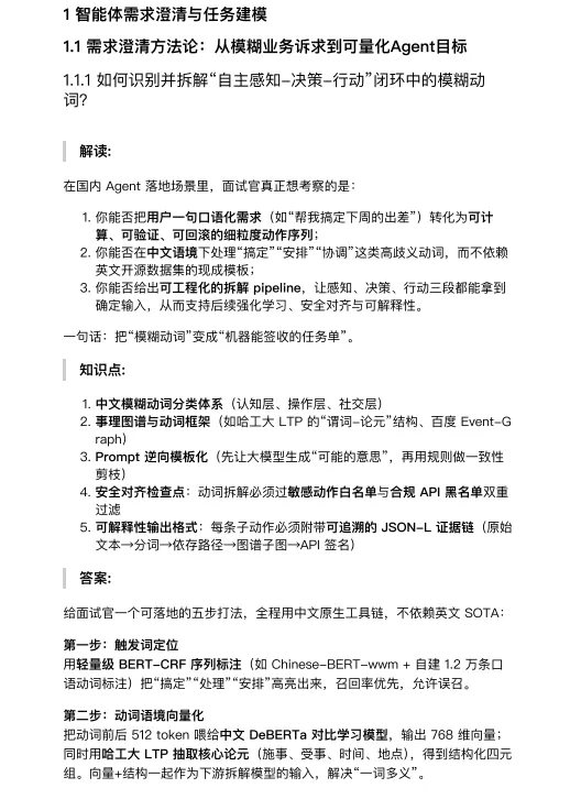 面试题库属性:每个小节都以问题的形式呈现,例如“如何...”或“请给出...”,并附有详细的“解读”和“答案”,非常适合用于技术面试准备和自我知识检视。