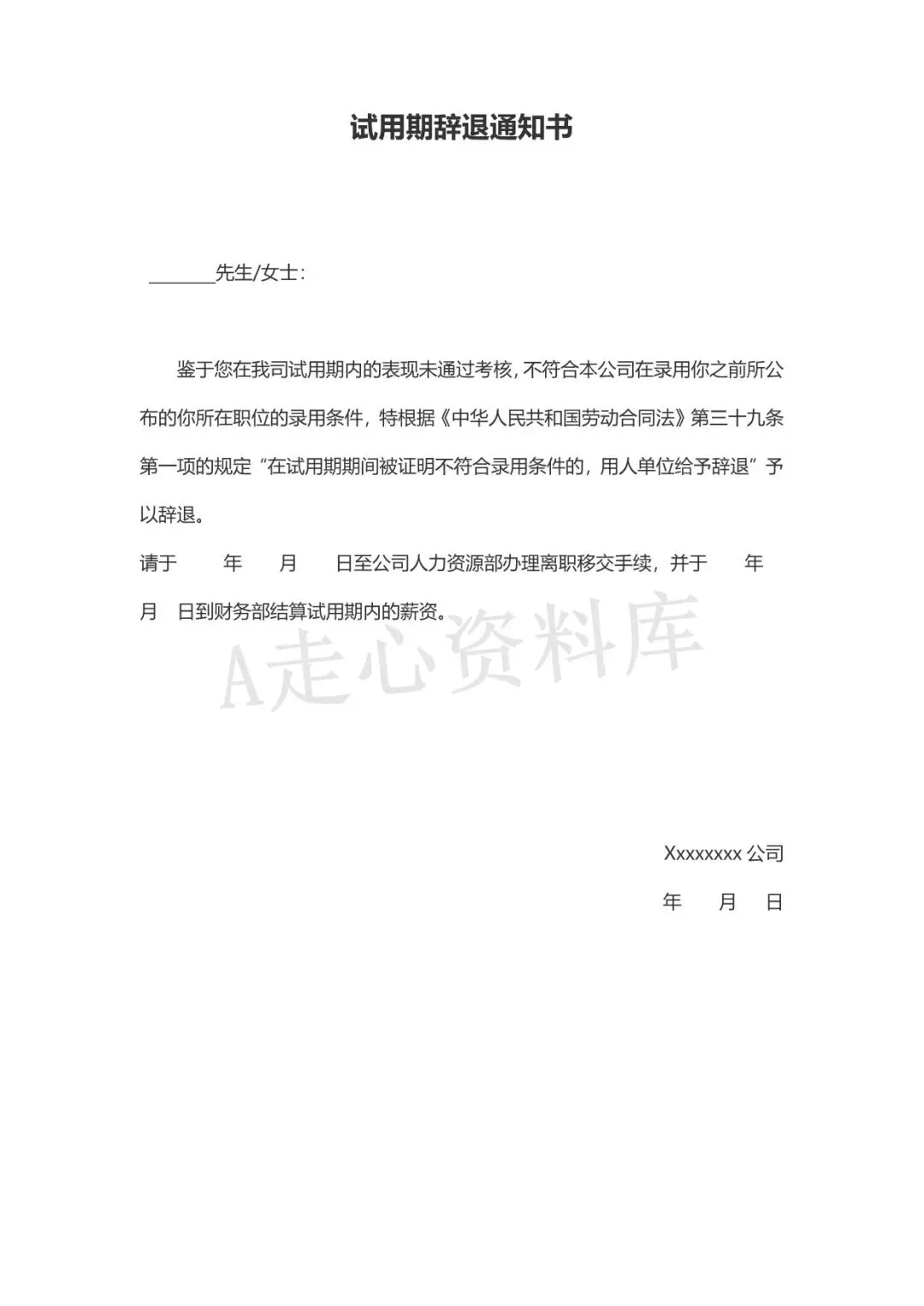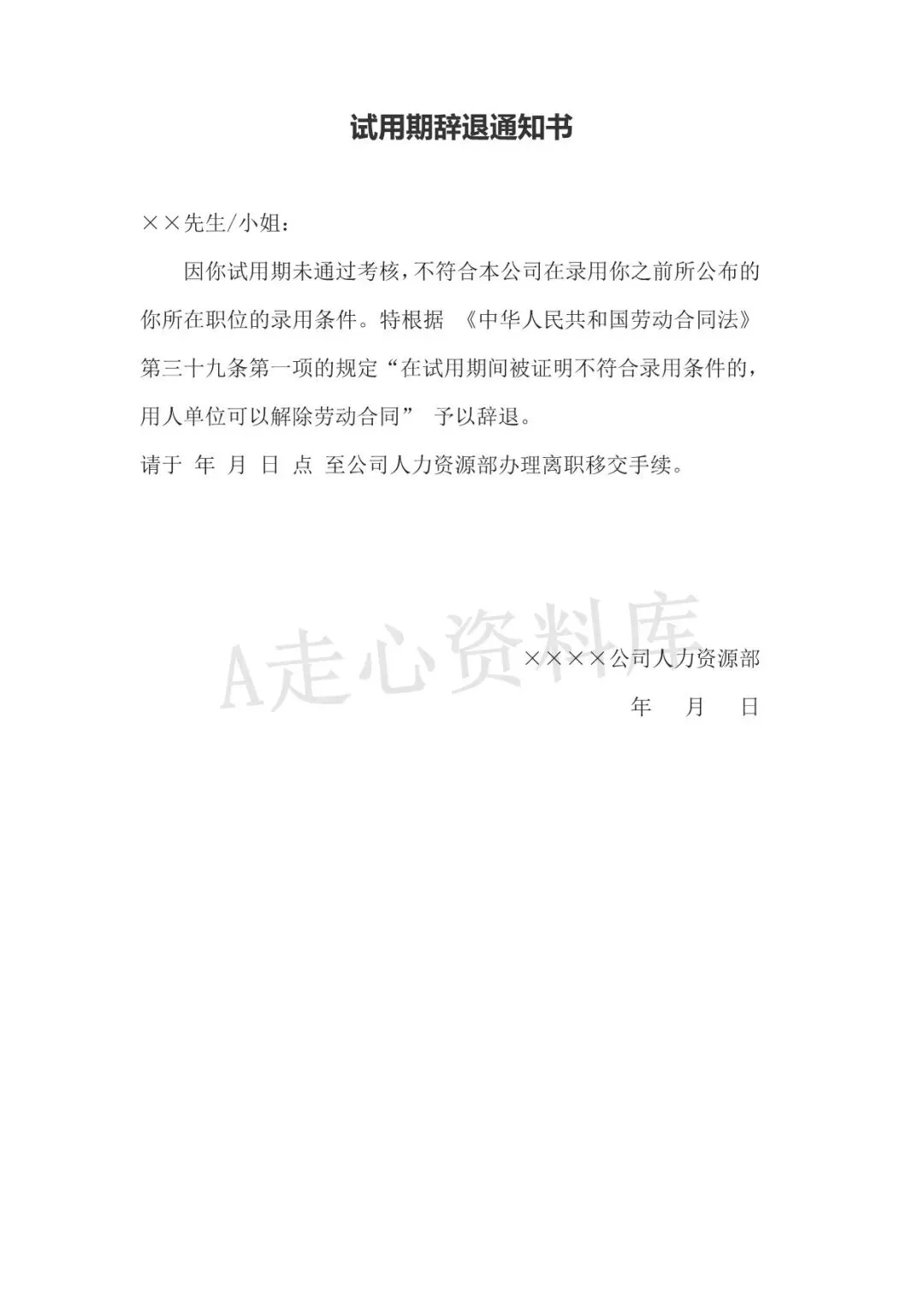 回复关键词“试用期辞退通知书”领取!