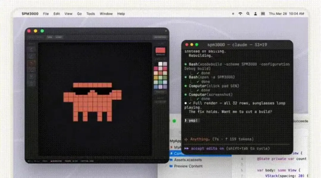 简单说,Claude 现在能在 CLI 里直接操控你的 Mac——打开应用、点击按钮、操作 UI、截图验证,全部自动完成。