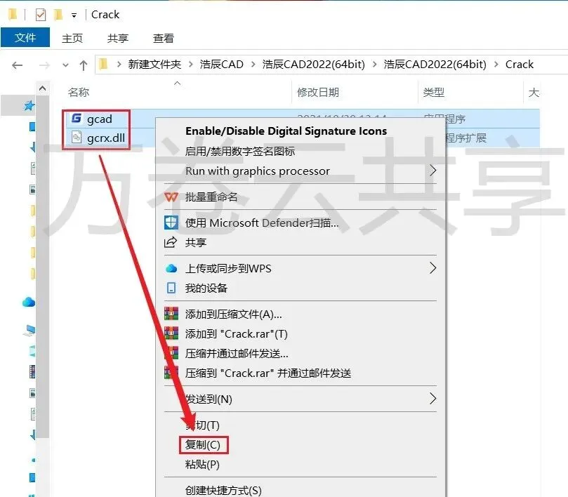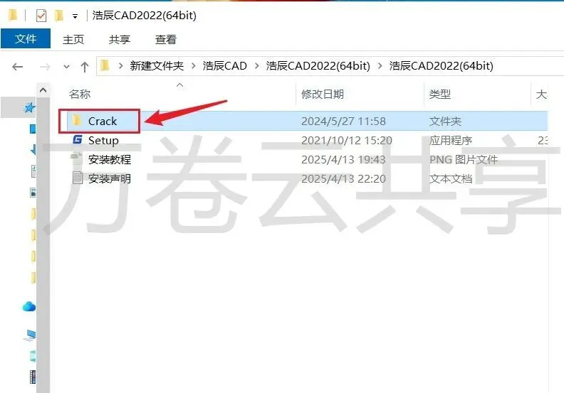 7.打开安装包解压后的浩辰CAD2022(64bit)文件夹,双击→打开Crack文件夹