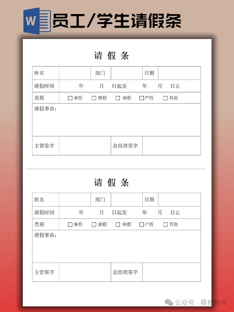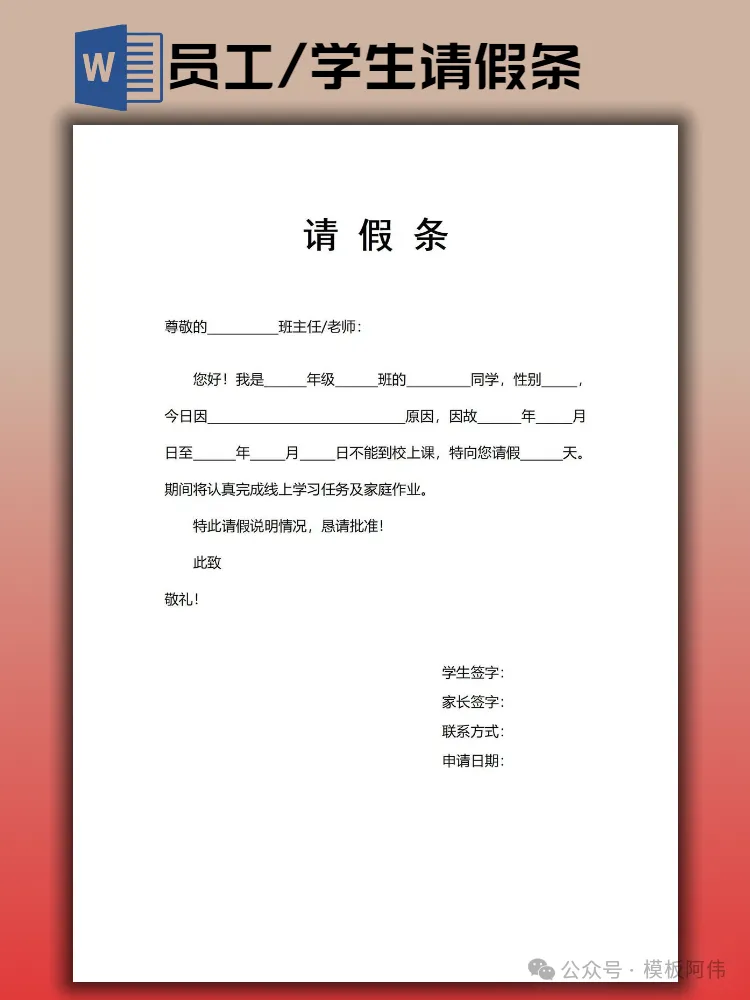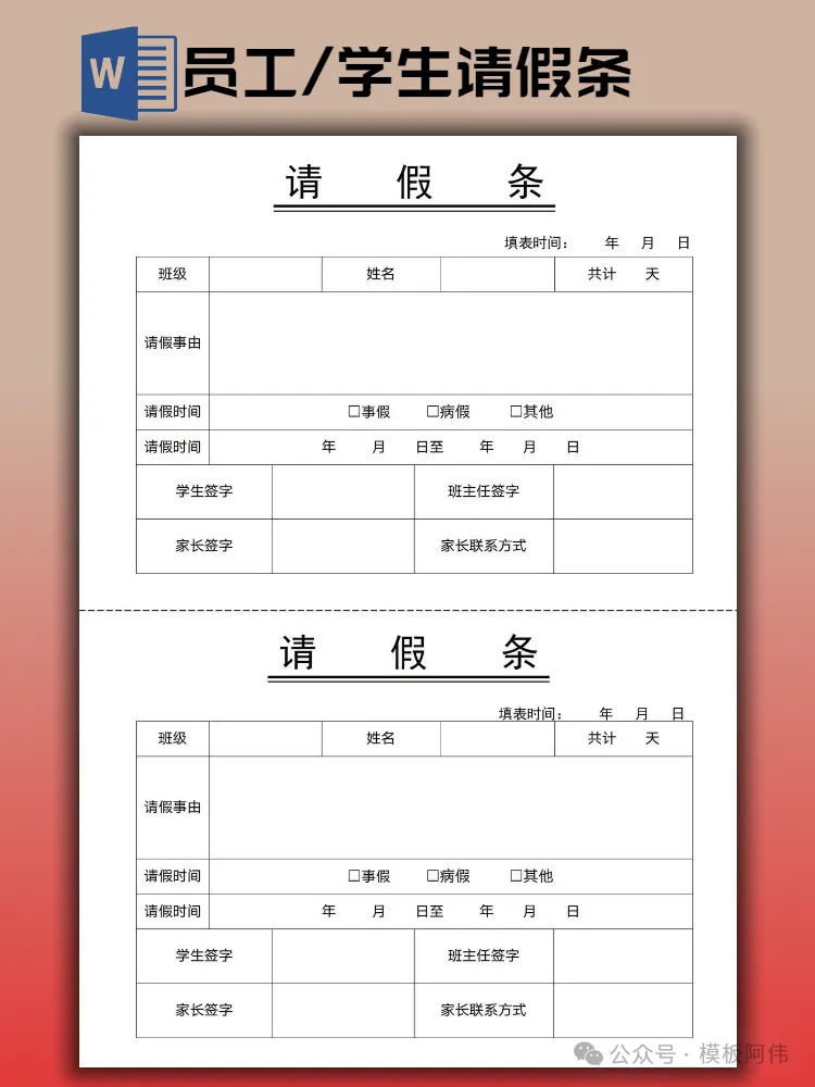 【2026】学生请假条/员工请假条模板(word电子版下载)本文内容分享【请假条模板】