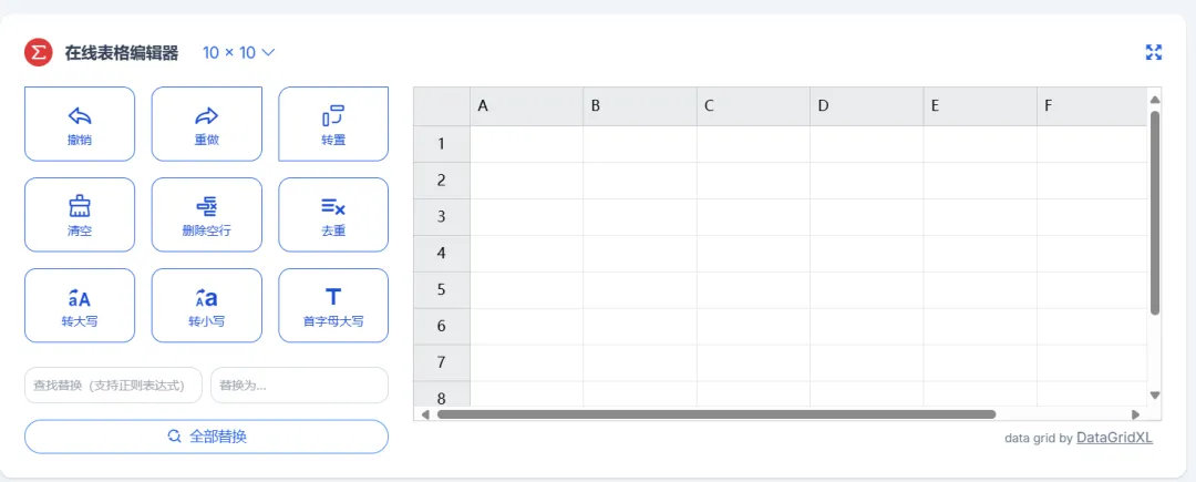 这是一个功能强大的在线表格转换工具,您可以在类似Excel的可视化界面中编辑表格,然后一键生成LaTeX代码(支持tabular、longtable等)。它彻底解决了手动编写LaTeX表格的繁琐问题,是LaTeX新手的必备工具。