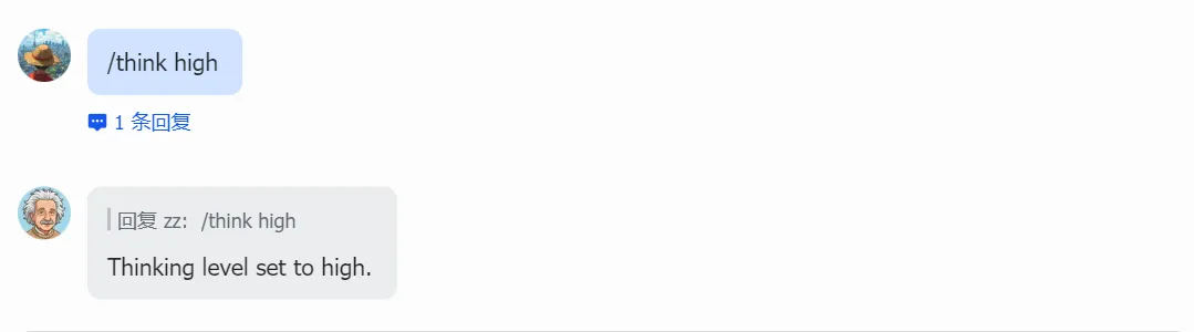 /think low — 低强度,适合简单问答。