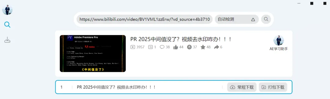 多平台下载神器,还能下载音乐,挺好用的!!!有两种下载方式,常规下载和打包下载,一般推荐打包下载。最后一款是青听音乐下载,支持无损音质格式和批量下载,有手机版和电脑版,有win和mac版本,下载速度最高100MB第二步:输入歌名,右键选择下载,并选择对应的音频品质下载即可https://pan.quark.cn/s/d975aabac8a3https://pan.baidu.com/s/1Ma_bLLpdh6omRItI1bDryQ?pwd=fuge观看高清教程请关注B站频道“AE学习助手”