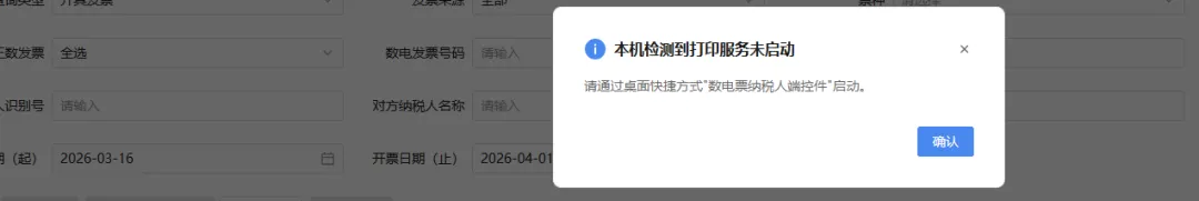 如果提示本机检测到打印服务未启动点击确认。如图所示: