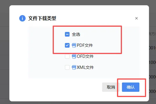 第二步:然后再选择我们需要的发票下载文件格式。(主要由PDF,OFD,XML这几种)