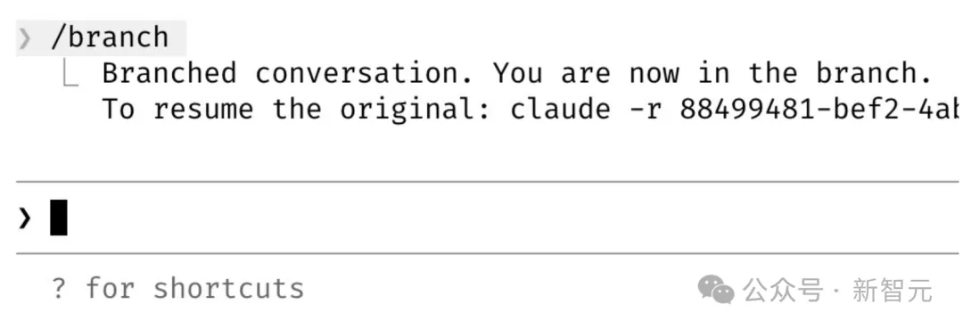 输入/branch即可创建一个分支对话。如果在CLI中,使用claude --resume <session-id> --fork-session也能实现同样的效果。
