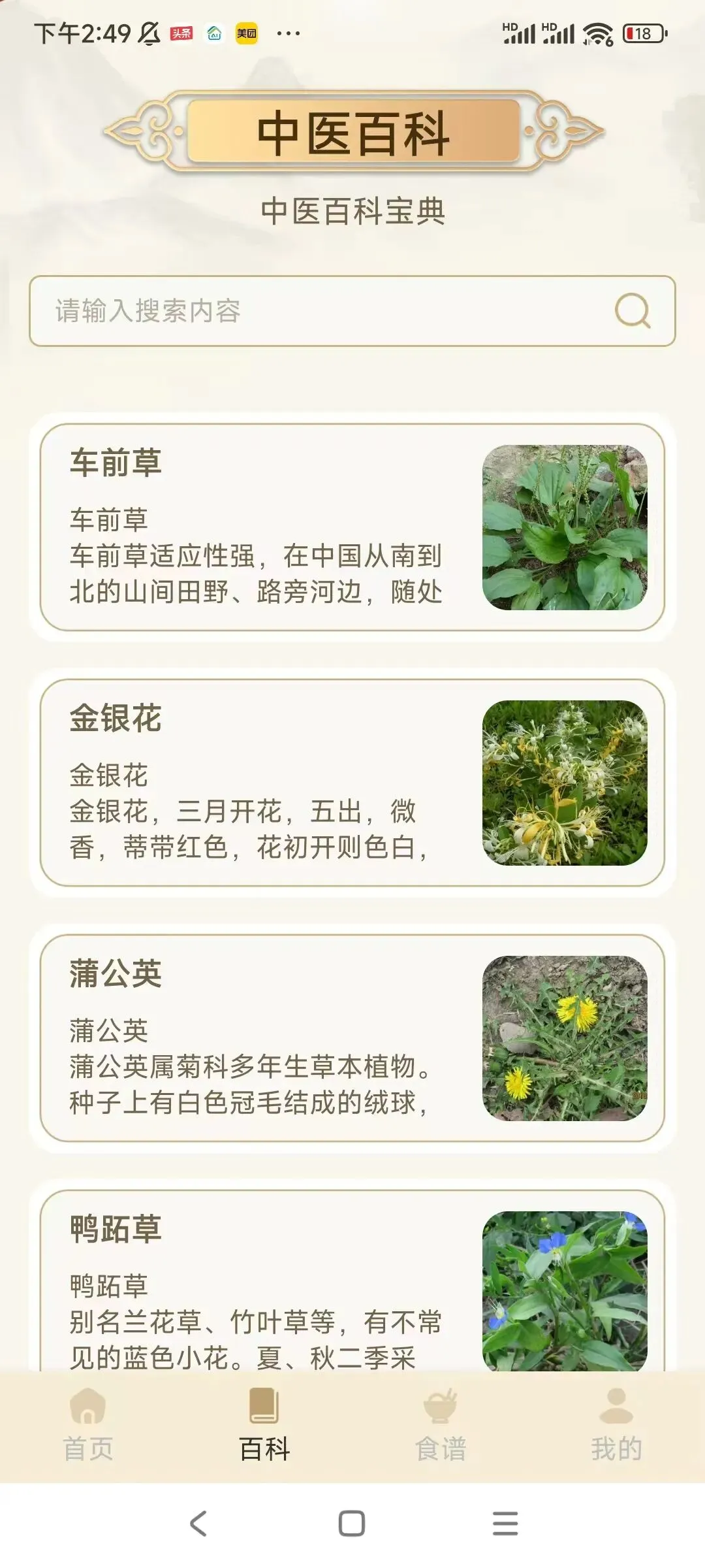 中药百科和养生食谱还带搜索功能