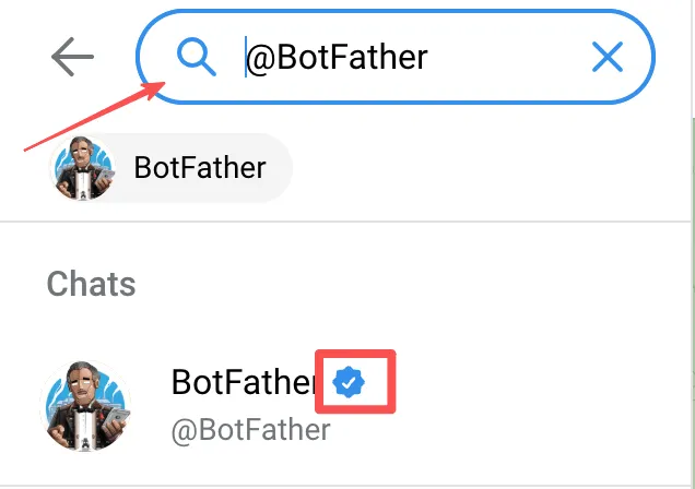 打开 Telegram,搜索 @BotFather(认准官方蓝色勾)