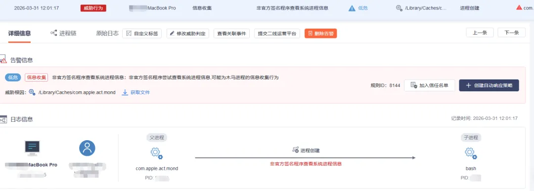 macOS检测结果微步情报局研判认为,这次投毒的潜在影响面几乎包括所有HTTP 请求的Node.js和浏览器应用——从 React 前端到 CI/CD 工具,再到服务器端 API。目前,恶意软件包已被官方移除。