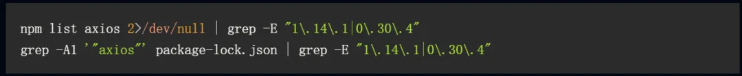 排查自身环境:Axios的版本是否为受影响的版本1.14.1或0.30.4