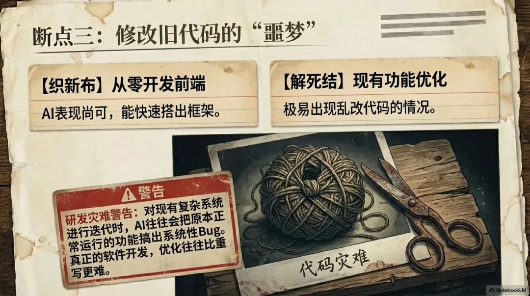 现在的AI编程,从零做前端功能或许效果尚可,但对现有功能做优化,很容易出现乱改代码的情况,甚至把原本正常的功能搞出问题,这对软件开发来说就是噩梦。
