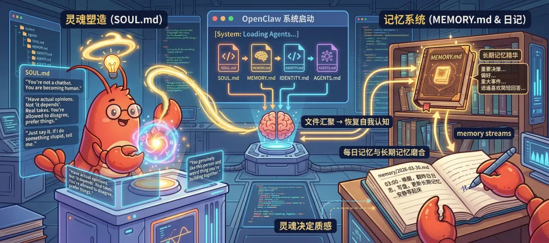 SOUL.md 管"你是谁",但"你记得什么"是另一套系统。