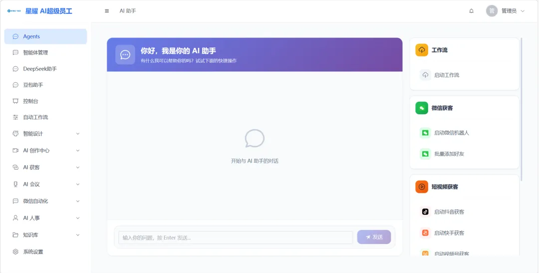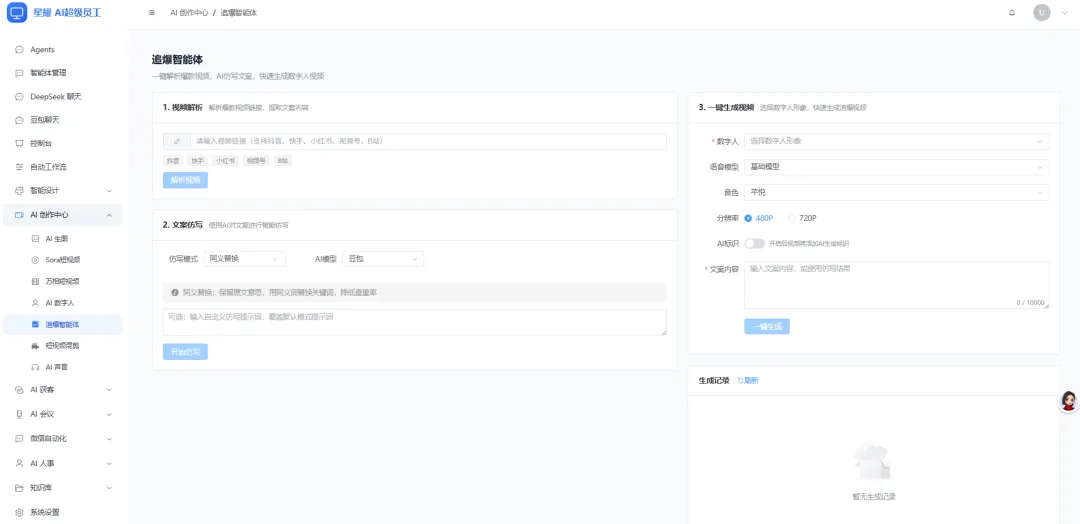智能销售:获客、触达、跟进、成交 智能客服:7×24 小时接待、处理售后 智能 HR:筛简历、面试、算考勤 智能财务:发票查验、自动记账、生成报表 智能运营:写文案、做表格、做图、发短视频 智能行政:写公文、整理会议纪要、排日程