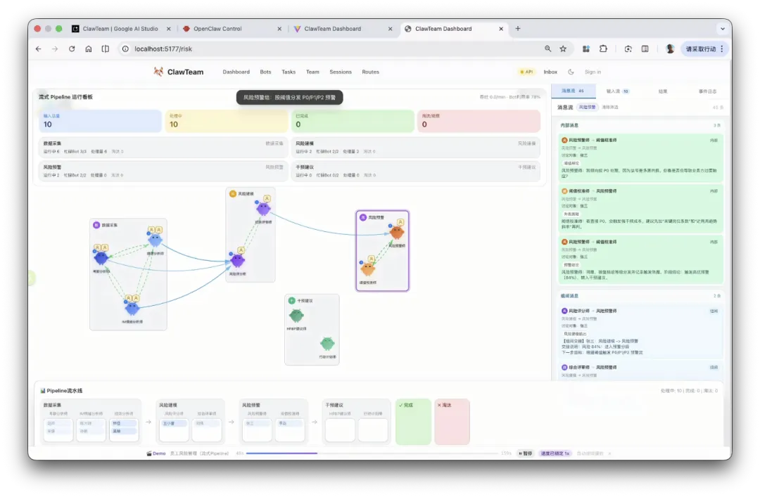 这也是我们的产品 —— ClawTeam 一直在做的事:把分散的智能体真正组织成一个可协作、可管理、可交付的团队系统。 这款产品直击多智能体协作中的真实痛点:任务看起来“还在进行”,但流程已经悄悄偏航(过早提交、消息发错对象、绕过委托者、陷入循环等)。这次,我们完成了对 OpenClaw 3.22 的核心适配。