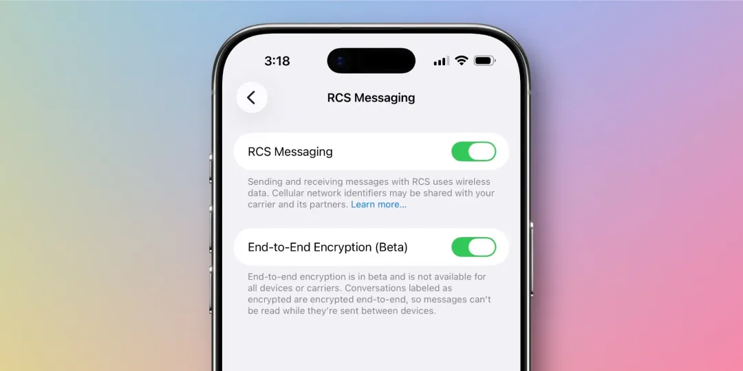 iOS 26.5 中重新启用了 iPhone 与 Android 用户间 RCS 消息的端到端加密(E2EE)。此前在 iOS 26.4 测试版中尝试过,但最终版本未包含。设置中消息部分新增端到端加密开关,默认启用,确保对话内容无法被第三方拦截。