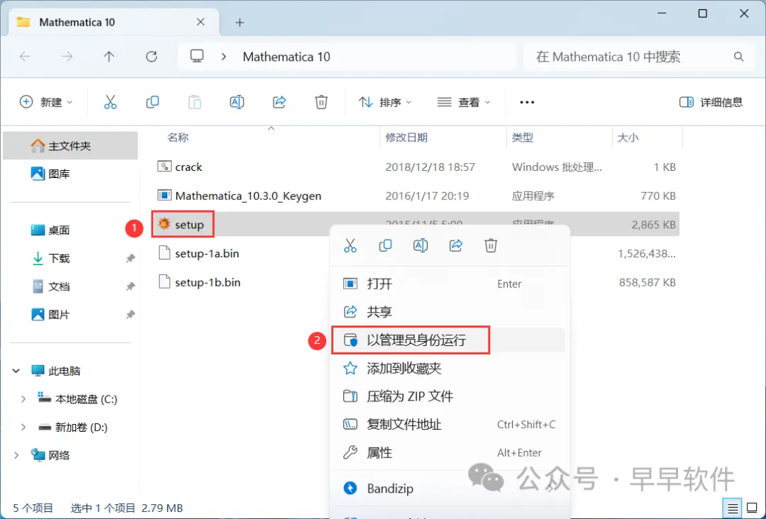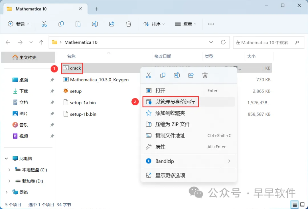 16、回到Mathematica 10文件夹,找到【crack】程序,右键选择【以管理员身份运行】它