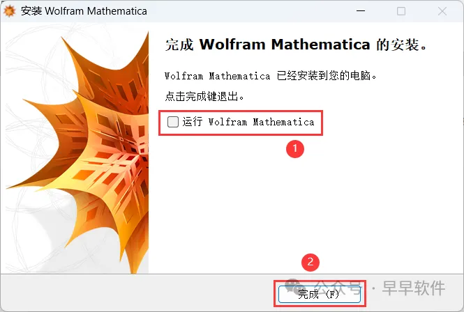 11、不勾选【运行 Wolfram Mathematica】,再点击【完成】