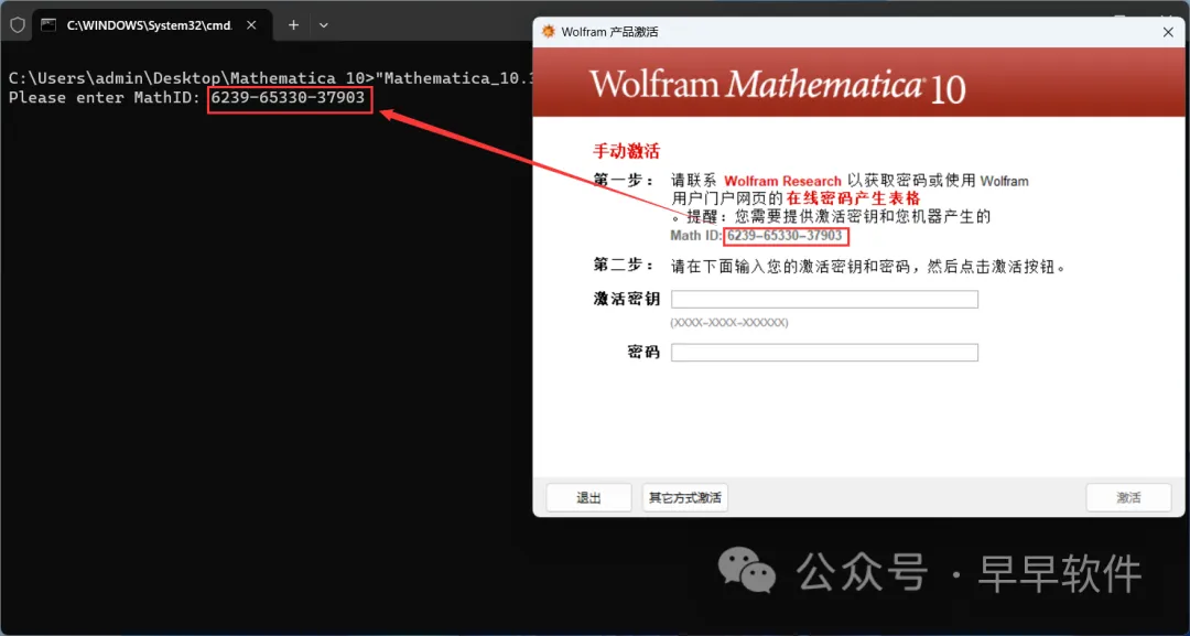 17、打开软件界面,将软件的【Math ID】填入到程序的内,再按下键盘的【Enter】回车键