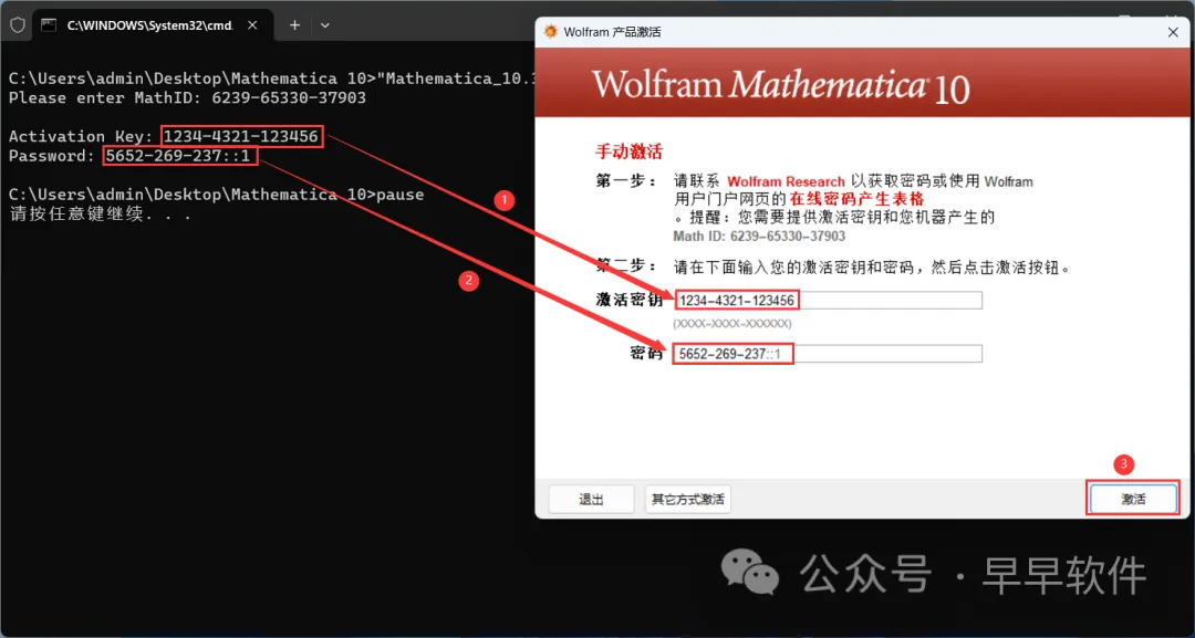 18、将程序的【Activation key】填入到软件的【激活秘钥】内,将程序的【Password】填入到软件的【密码】内,再点击【激活】
