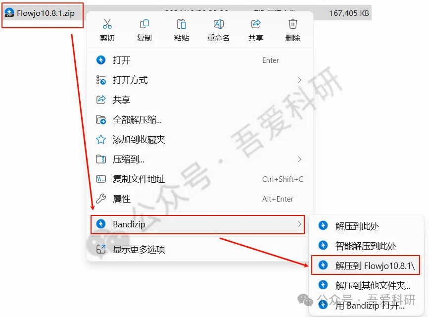 1.选中下载好的安装包,右键解压到“Flowjo10.8.1”文件夹