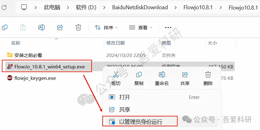 2.选中“FlowJo_10.8.1_win64_setup.exe”右键以管理员身份运行
