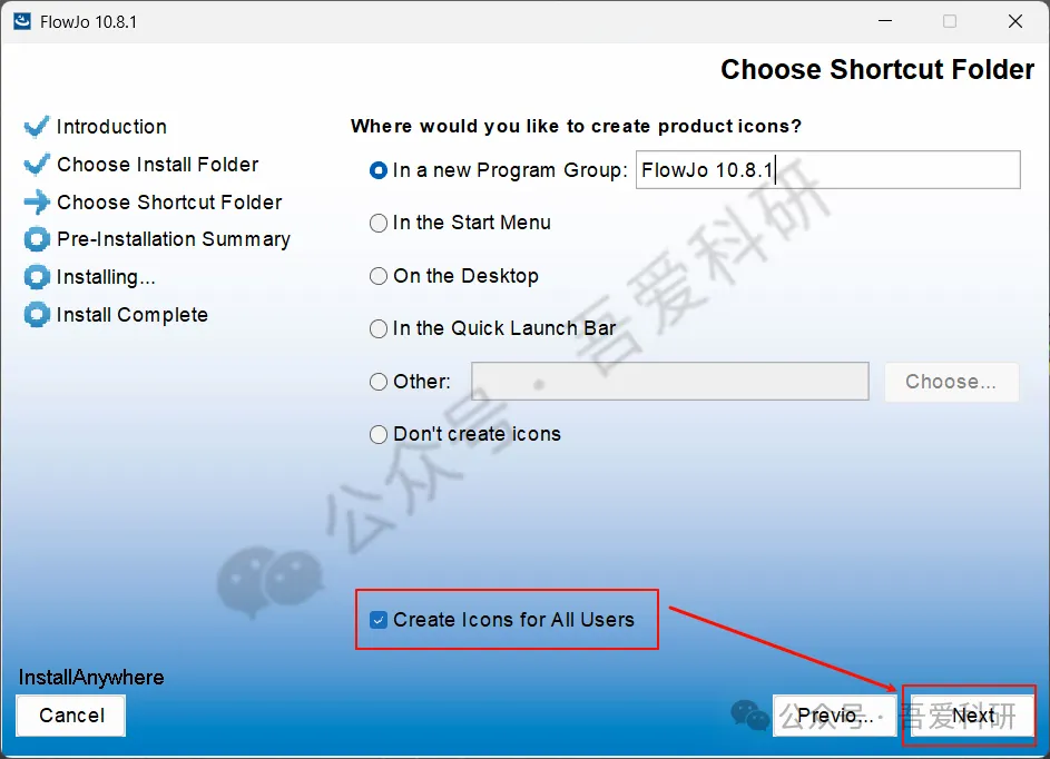 5.勾选“CreateIconsforAllUsers”,点击“Next”