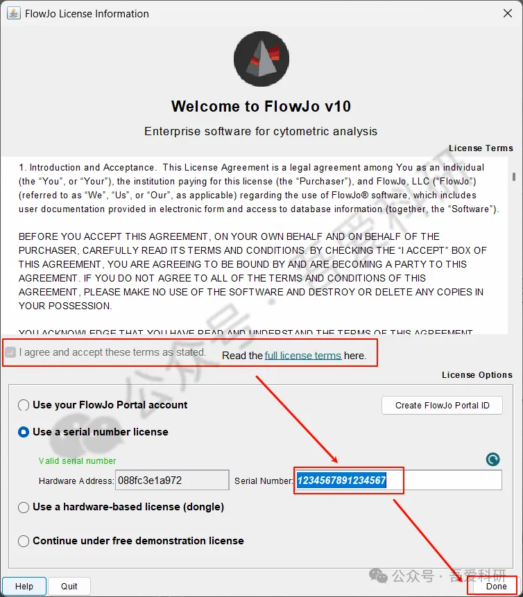 11.勾选协议,输入:SerialINumber,点击“Done”