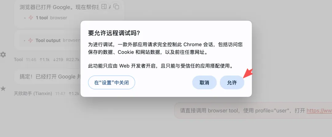 然后你的本地浏览器会跳出下面的弹窗,我们直接点击允许。
