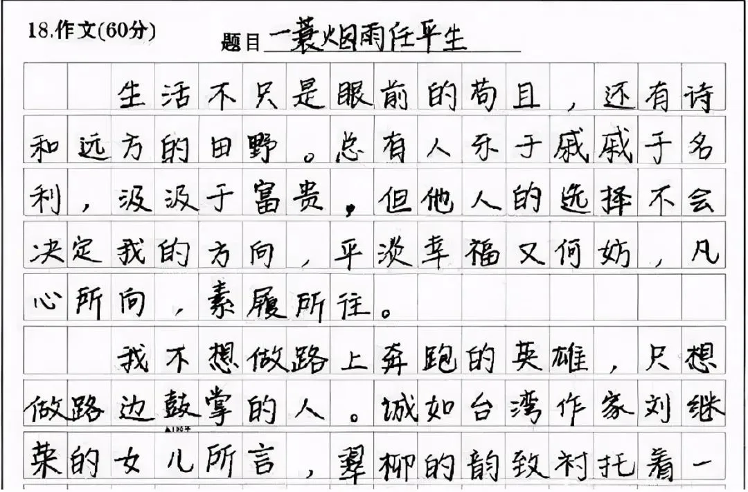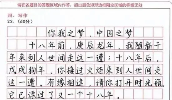 “赵今麦字体”走红,遇上电脑阅卷让老师赏心悦目,赶紧学习!对于一名学生来说,能够写出来一手好字,可以在考试的时候多得好几分,为他们抢占优势。俗话说得好:字如其人,学生的字写得好看也证明她的性格很好,所以说字体好看的人就是有优势。现在的初中都喜好模仿网红字体,尤其是女学生,喜欢模仿网络上走红的网红字体,比如说“奶酪体”、“鲸落体”等等,这些网红字体特点都是非常可爱,深受小女生的喜欢。不过最近走红了一种全新的字体—赵今麦体,得到阅卷老师的喜爱,比奶酪体可强太多了。“赵今麦字体”走红遇上电脑阅卷让老师赏心悦目“赵今麦体”的出处就是星圈学霸赵今麦,赵今麦有着甜美的长相,精湛的演技,是娱乐圈的当红小花,深受网友的喜爱。据悉当初她在高考的时候凭借第一名的好成绩考入到中戏,是一个颜值与实力并存的学霸。彼时赵今麦的课堂笔记在网上上走红,从她的字迹可以看出来她的性格特别洒脱,每个字的大小都是居中合适的,不会出现凌乱,连笔的情况,堪比高考状元唐楚玥的字迹。就连阅卷老师都喜欢赵今麦的字迹,并且在高考之前,老师都建议可以模仿赵今麦字体来练习,这种字体可是比奶酪体强太多了。赵今麦的字体还是很适合出现在考试当中的,字迹工整,这种试卷当老师打开后,就知道写的是什么,愿意多给学生几分。笔者建议各位学生最好是不要模仿网红字体,因为当网红字体出现在电脑阅卷下,就会变成“二维码”,根本看不清写的是什么。网红字体碰上电脑阅卷就像是“二维码成了精”每年高考人数都在不断增加,22年高考人数已经增加到900万,阅卷老师一天之内需要判卷判到上千份,如果说这个时候学生的字迹模糊看不清,电脑无法识别出来,老师是会误判的,根本不会给去仔细辨认。就比如说下面这张试卷,在电脑阅卷下看着让人头疼,根本看不清楚写的是什么,就好像是“二维码成了精”,老师看到后直接不给分。可能学生在答题的时候认为网红字体特别好看,但是等到阅卷的时候,网红字体就会被打回原形,因为每一个字的间距都特别小,挨得特别近,所以老师也很难可以分辨出来写的是什么。考生对自己的答案信心满满,老师却会因为不认识答案而给你扣分,等到成绩出来的时候就傻眼了。哪些字体可以在高考的时候加分?其实不需要任何特殊的字体,有很多学生为了可以在高考的时候可以依靠字迹加分,都在苦练字体,但其实想要得到阅卷老师的欣赏,只需要写出来干净工整的字体。很多学生写的字并不是特殊的字体,但是却可以得到老师的喜爱,主要是因为字迹看起来有辨识度,可以让老师一目了然,阅卷老师还是很喜欢这种字体的,至少不会再高考的时候丢分。卷面是很重要的,在高考的时候,老师判卷很辛苦,当他们判到一半的时候,看到干净的卷面,自然会感觉到很轻松,所以你的卷面不能潦草,模糊,不然的话是不会得到阅卷老师喜爱的。最后一类字体就是像文中这种的特殊字体,除了赵今麦字体以外,还有衡水体,楷体等字体都是值得学生练习的。不过这些字体并非是一朝一夕可以练成,学生想要练成的话,必须要从小学开始,练字是需要从小开始的。其实只要你的卷面工整,干净,没有错字的话,就足以得到阅卷老师的喜爱,当然你渴望追求更高层次的卷面,那么是可以练习一些特殊字体的,不过网红字体是不提倡的。“赵今麦字体”走红绝非偶然,这都是因为赵今麦平时苦练字迹,这和她的努力学习是脱不开关系的,这也是为什么赵今麦可以成为学霸的原因。学生需要格外注意考试中的字体,除了字迹美观之外,还需要保持卷面的干净,禁止勾抹,按照答题规范来回答,这样的话阅卷老师自然是喜欢的。对于学生来说,考试是特别重要的,旧的学年结束,新的学年即将开始,趁着暑假查缺补漏,练习字体,争取在考试的时候取得好成绩。来源:版权说明:网络,版权归原作者所有,若有侵权请联系删除。精选学习资料统编语文1-6年级下识字表写字表统编版语文1-6年级下册类文阅读统编版语文1-6年级看图写话学习统编版语文1-6年级语文专项训练统编版语文1-6年级语文课内词语统编语文1-6年语文看拼音写词语多个版本1-6年级数学专项训练卷多个版本3-6年级英语专项训练卷统编版语文1-6年级下册生字组词统编版语文1-6年级下册课堂笔记