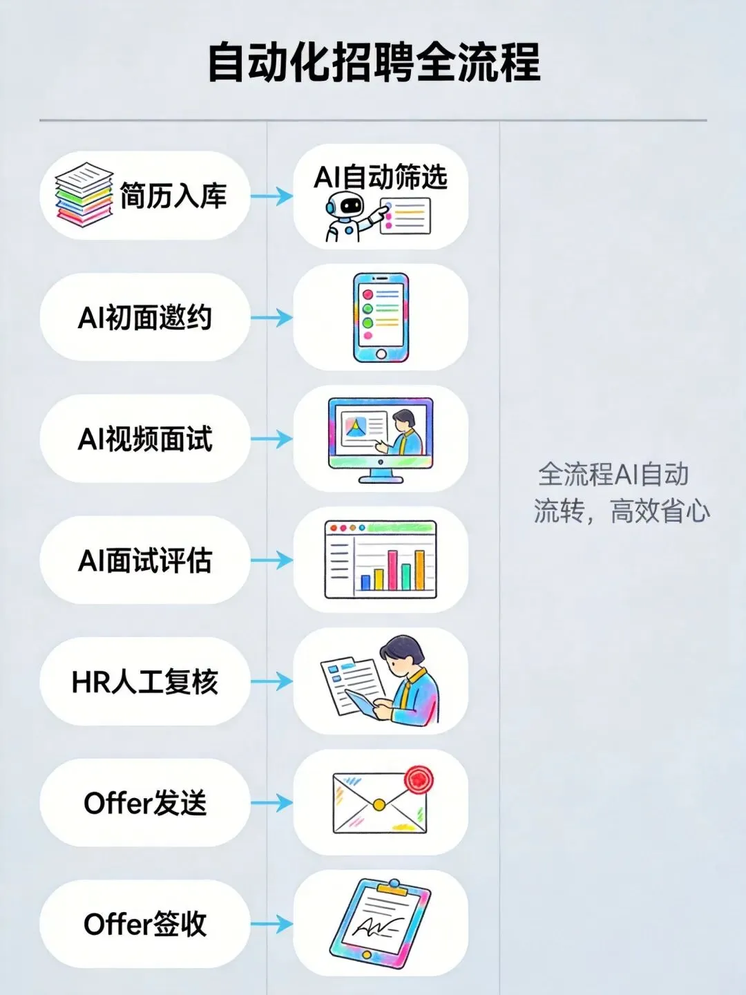 从简历到Offer,全程 自动流转、自动执行、自动通知 。