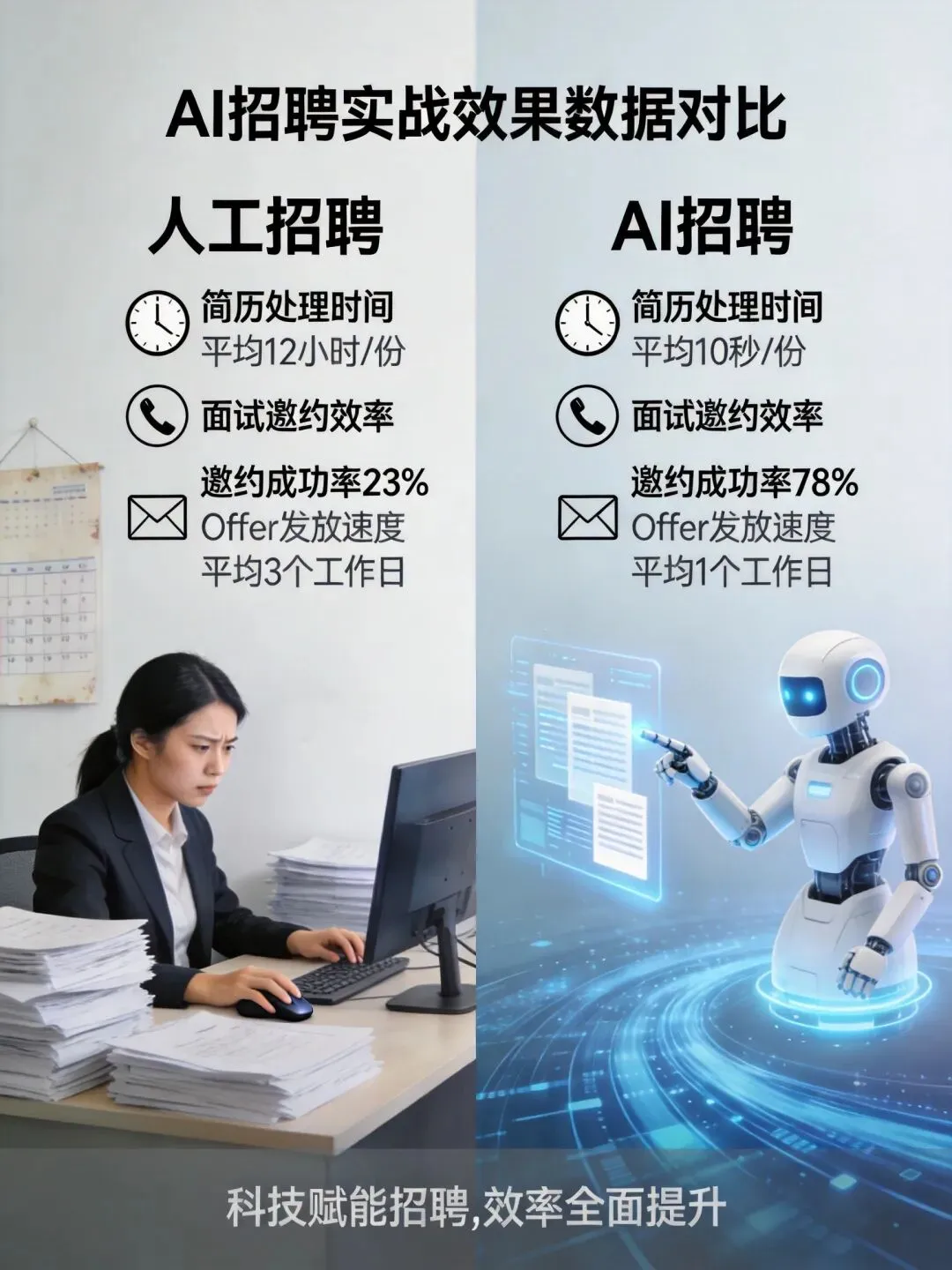 传统HR的一天:打开招聘平台,下载50份简历,手动筛选出10份,打电话邀约,协调面试官时间,记录面试结果,填表,生成Offer,发邮件...