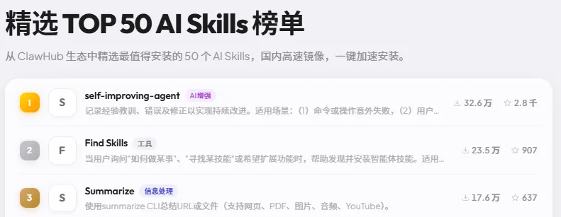 立即访问ClawHub,搜索对应的技能代码,让你的AI助手拥有“搜得快、读得懂、记得住”的超能力。