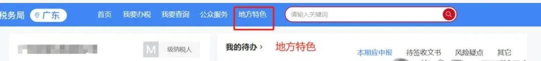 1、登录电子税务局系统首页-地方特色-税务申报及缴纳-申报查询及打印