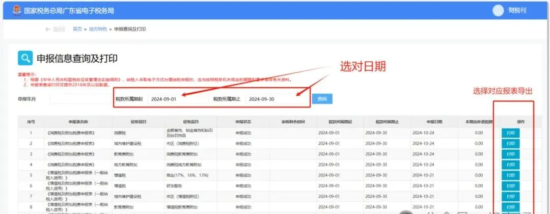 2、选择对应日期,选择对应报表,然后点击打印即可导出保存到电脑桌面