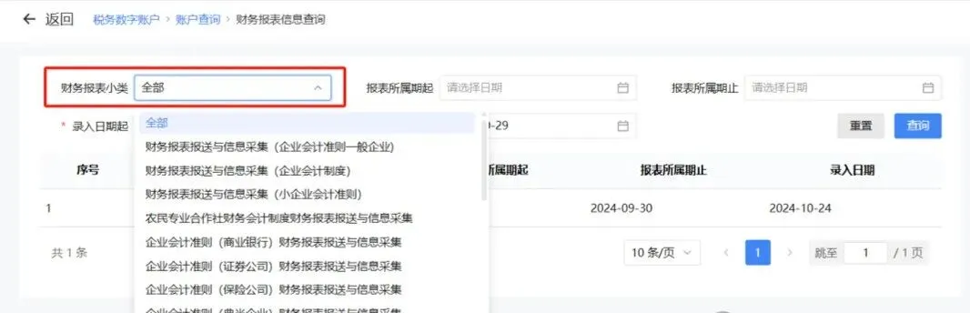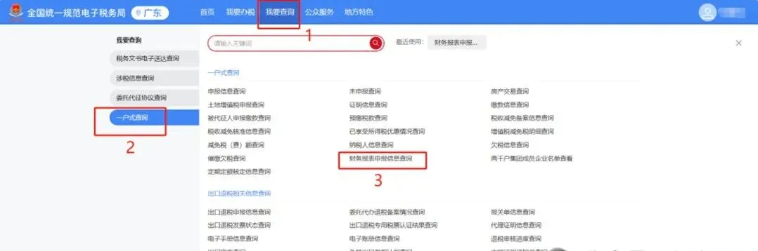 1、登录电子税务局首页-我要查询-一户式查询-财务报表申报信息查询