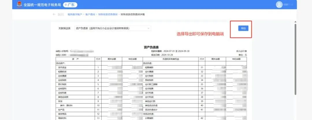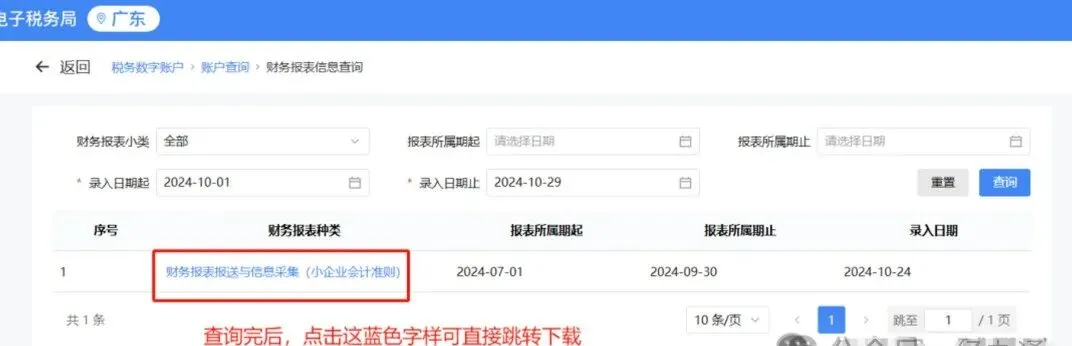 4、点击查询后,会出现相应所属时期的财务报表,选择想要的报表,跳转下载