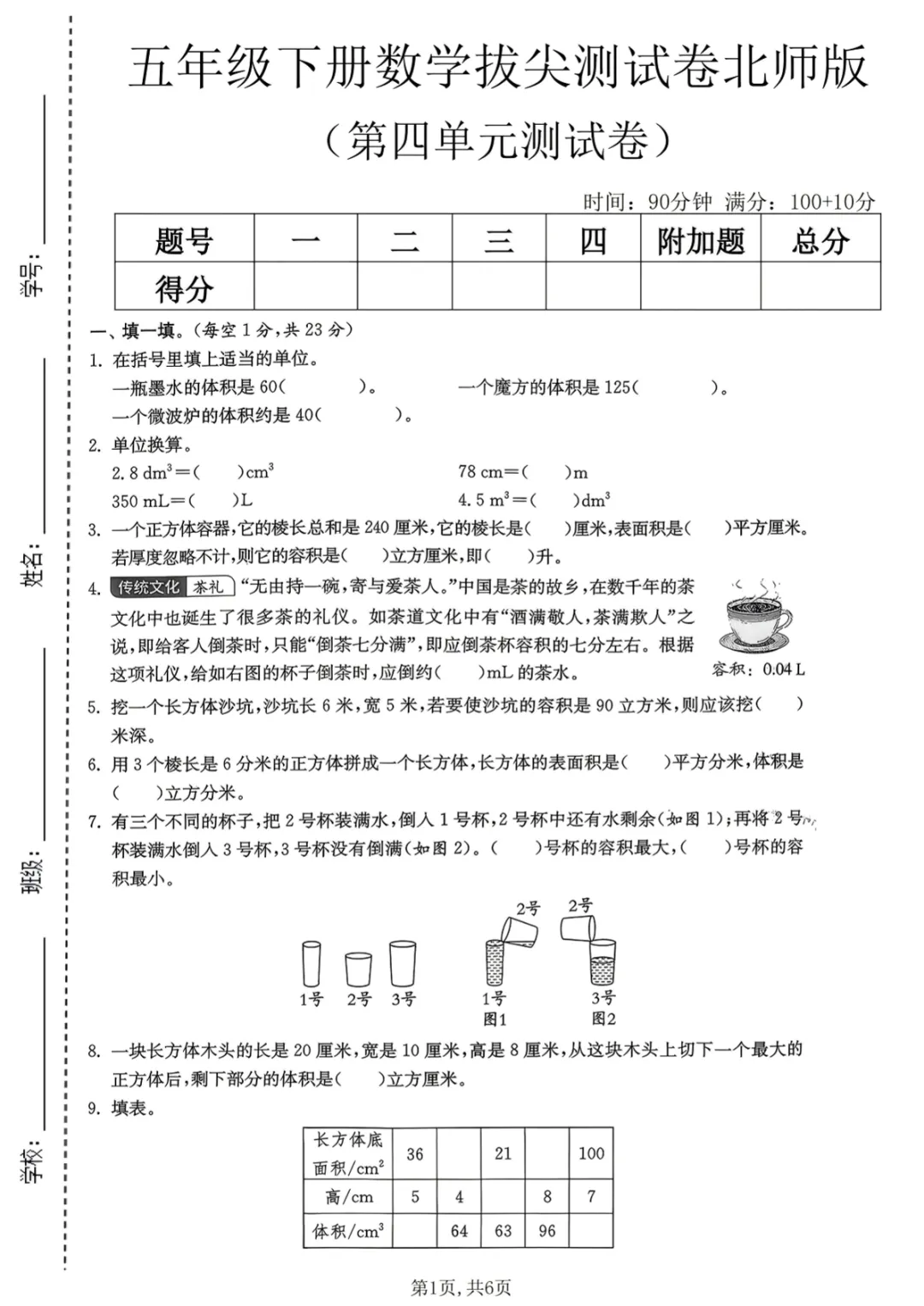 五年级(下)数学 第四单元拔尖测试卷《北师版》