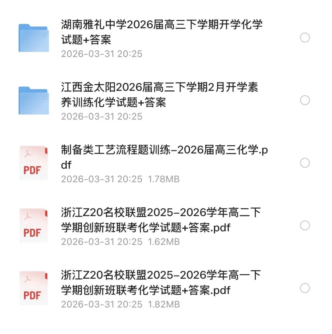 (电子版可下载打印)2026年3月高中化学试题汇编今天给大家推出:2026年3月高中化学试题汇编可直接打印!老师已为大家备好电子打印版,关注公众号后复制链接浏览器打开即可直接领取完整电子版资料。篇幅有限,以下仅展示部分内容如获取完整版资料点击关注“三藏改作文”公众号关注公众号后复制链接到浏览器即可免费领取链接:https://pan.quark.cn/s/aab1c0c4840b
