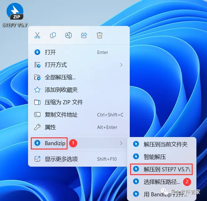 1、下载STEP7 V5.7软件安装包到电脑上,右键选择【解压到STEP7 V5.7\】