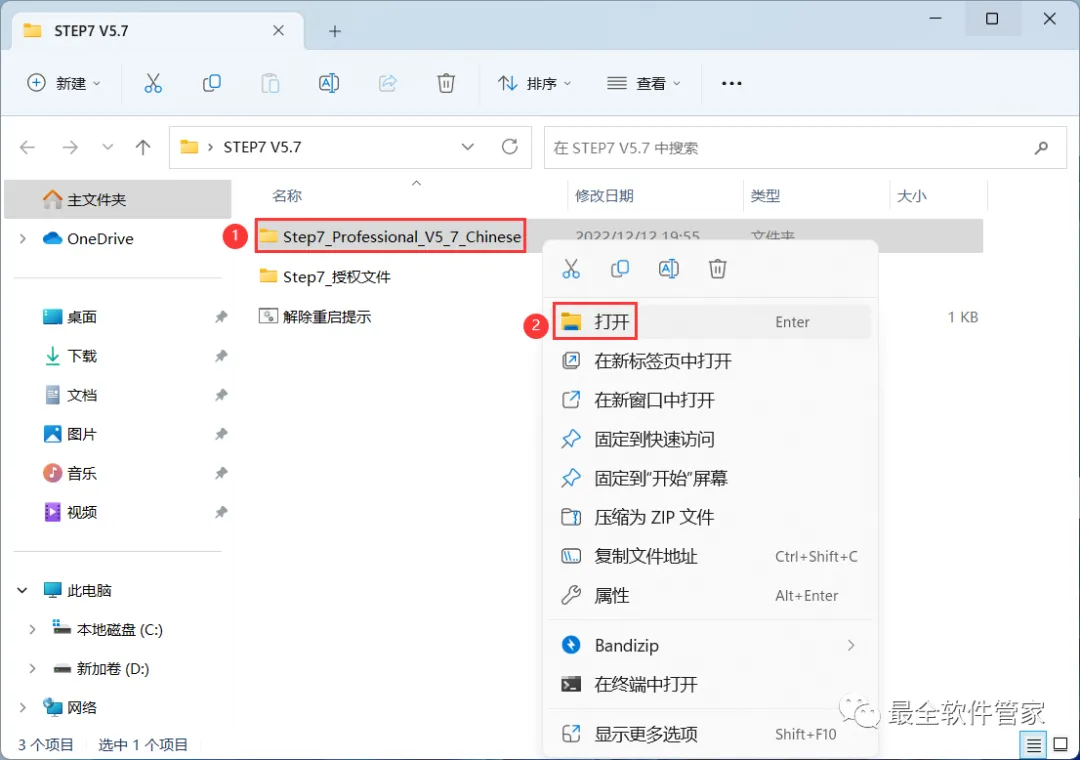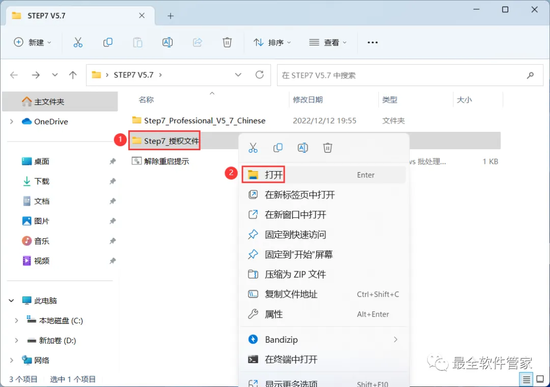 22、回到STEP7 V5.7文件夹,找到【Step7_授权文件】文件夹,右键【打开】它