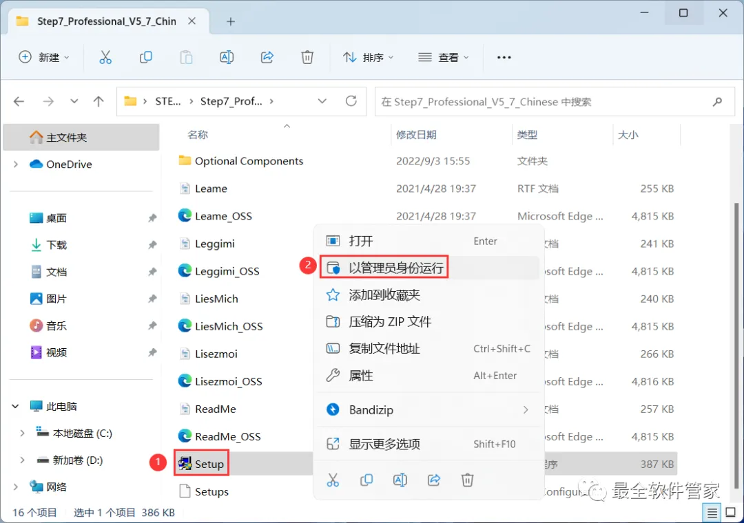 6、找到【Setup】应用程序,右键选择【以管理员身份运行】它